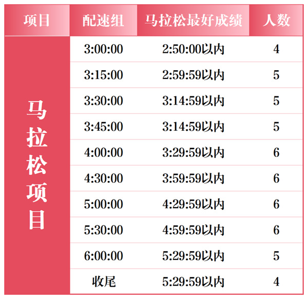 4、选手仅可申请本人中签缴费项目的官方配速员,跨项目申请视为无效申请。